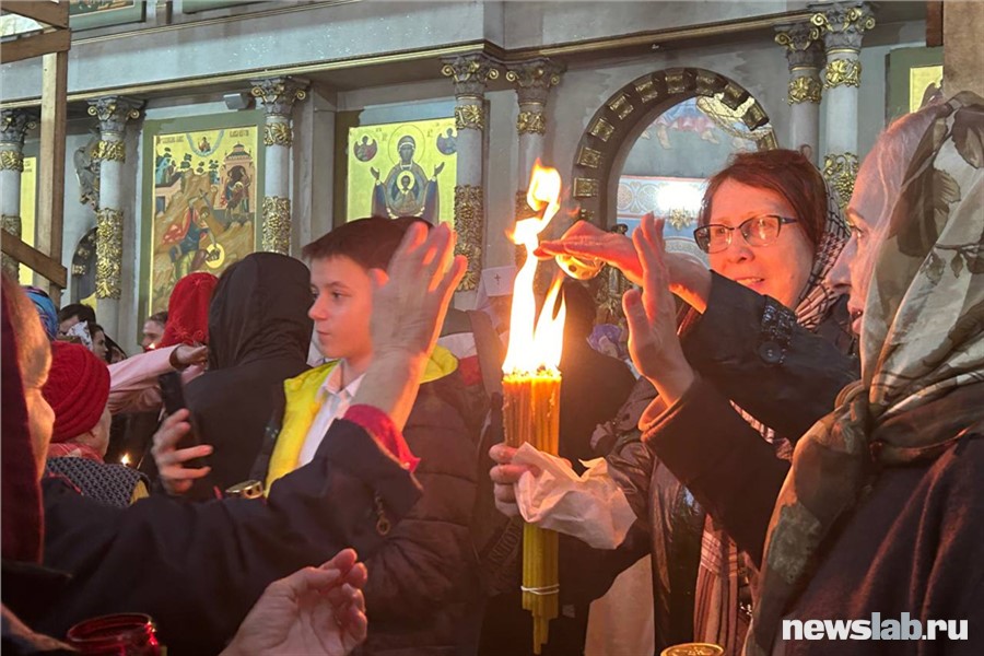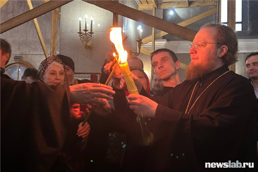 После того, как в Иерусалиме сходит Благодатный огонь, его частички развозят в православные церкви по всему миру. В России прежде всего его доставляют в московский храм Христа Спасителя. Оттуда огонь развозят во все регионы России. В Красноярский край Благодатный огонь доставляют уже более 16 лет.