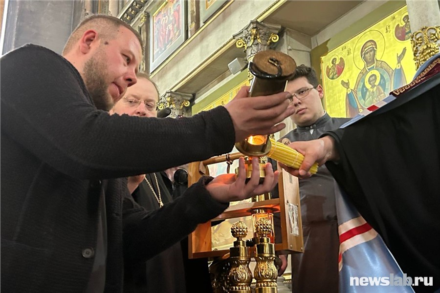 Затем из храма огонь доставили в Свято-Успенский мужской монастырь.