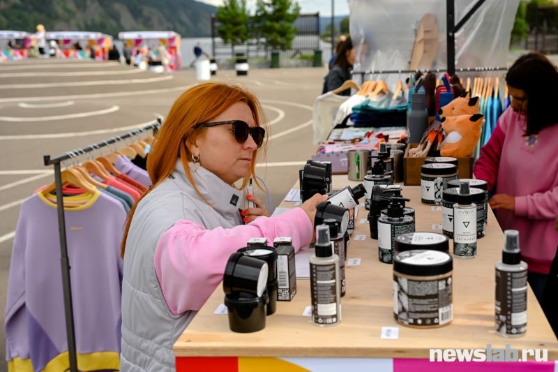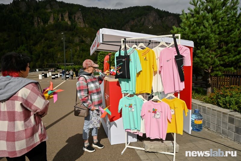 Фестиваль «Энергия+» начался в 10 утра. К этому времени гости потихоньку собирались на набережной перед сценой — здесь уже работала ярмарка местных мастеров и фудкорт.