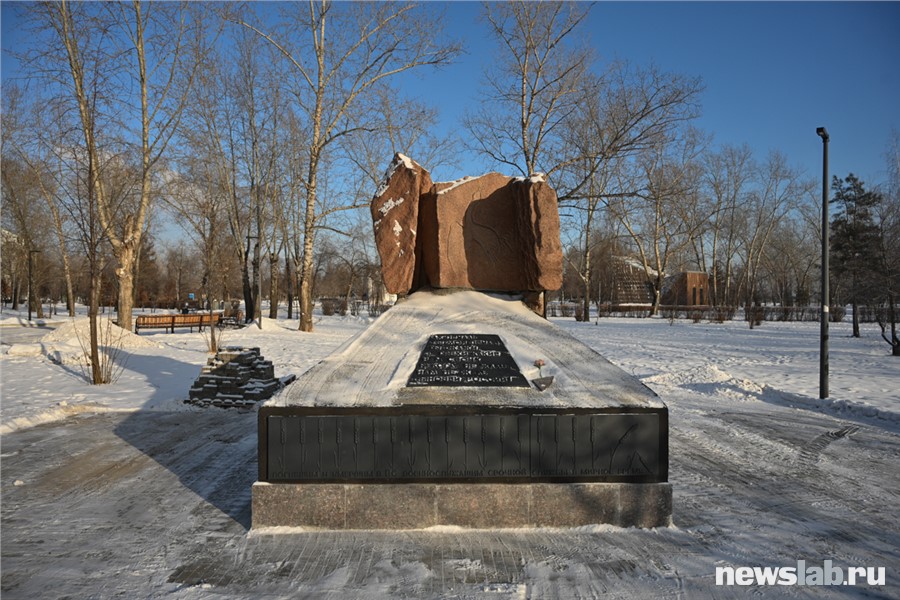 Люди Красноярского края на фронтах Великой Отечественной войныВ 1966 году ветераны 17-й гвардейской стрелковой дивизии обратились в горисполком с предложением заложить на месте бывшего полевого лагеря парк «Имени Красноярских гвардейцев». Через год на входе в парк, не имевший особой планировки, установили стелу защитникам Родины — на ней изображены ряды красноармейцев.