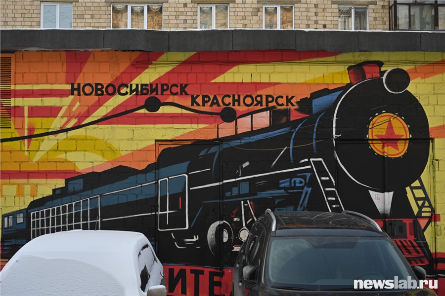 Осенью прошлого, 2024 года, в Красноярске появился еще один мурал на околовоенную тему. Во дворах за лицеем № 28 уличные художники расписали трансформаторную подстанцию (Карла Маркса между домами 175 и 177). Она изображает паровоз, получивший прозвище «Живучий Сибиряк». История эта не самая известная на своей родине — в Красноярске.