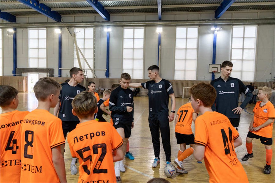 Посмотреть на игру молодежного состава клуба компания «Норникель» пригласила юных спортсменов из красноярского футбольного клуба «Тотем».