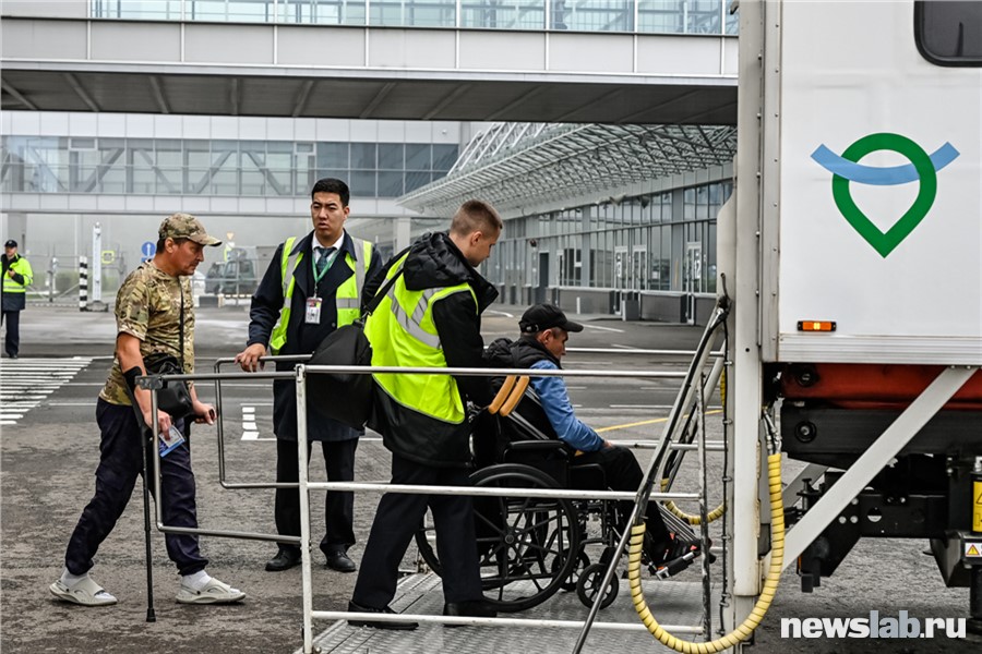 Когда самолет обслужен, на поле появляется экипаж. Следом за ними на посадку идут люди, которым требуется особенная помощь.