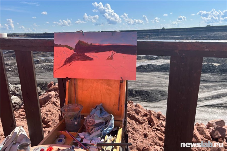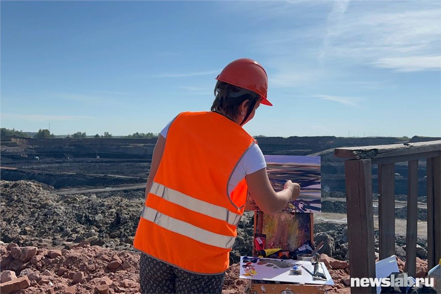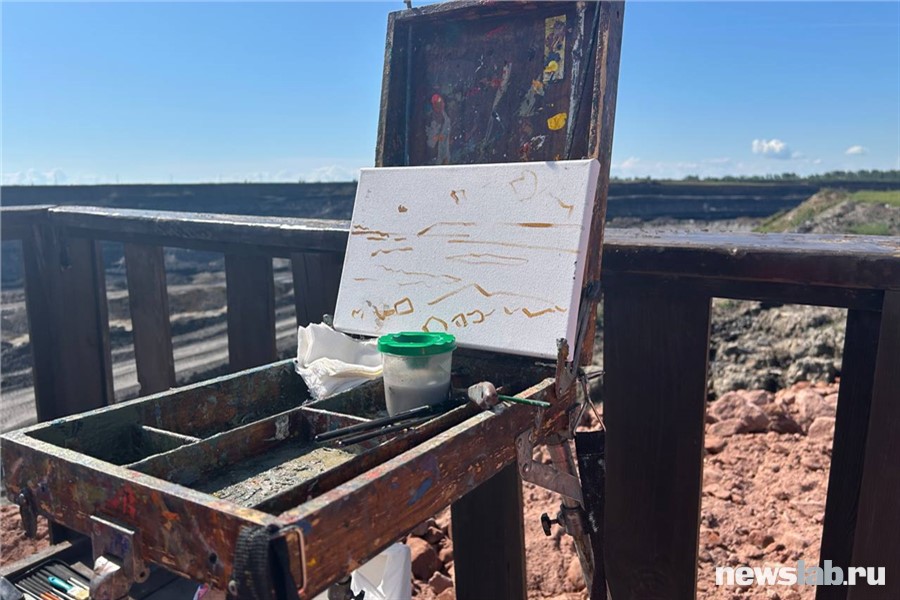 Пять художников-профессионалов из Иркутска и Красноярска на протяжении нескольких дней работали на смотровой площадке, откуда открывается панорама угольного разреза протяженностью 2,5 километра.
