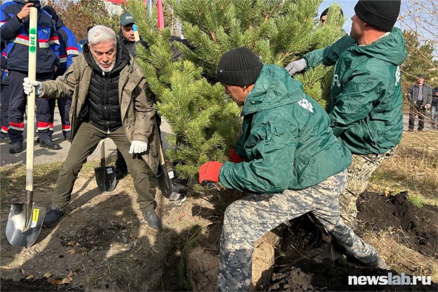 А затем, вооружившись лопатой, народный артист вместе с генеральным директором Олегом Бубновским высадил молодую сосну.