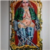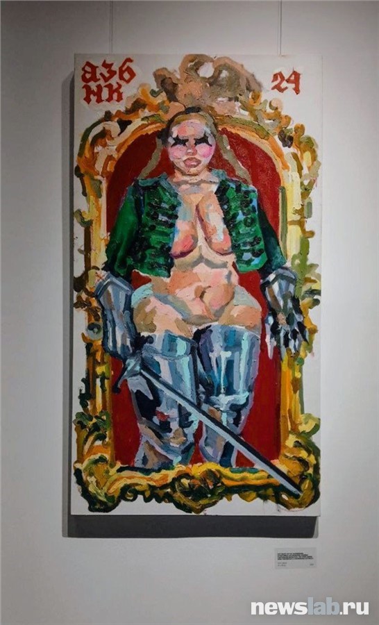 Знакомство с альтернативным средневековьем начинаю с портретов видных представителей Еритиковских — семьи винокуров, о которой не узнаешь из учебников. Их существование под вопросом, но, стоя перед «Ростовым портретом Вампиреллы Кровопийцы-Еритиковской», начинаешь верить в каждую деталь этой мрачной легенды. На полотне — властная полуобнаженная женщина в расстегнутом мундире и доспехах, с мечом в руке — как если бы Рубенс вдохновился Жанной д’Арк.
