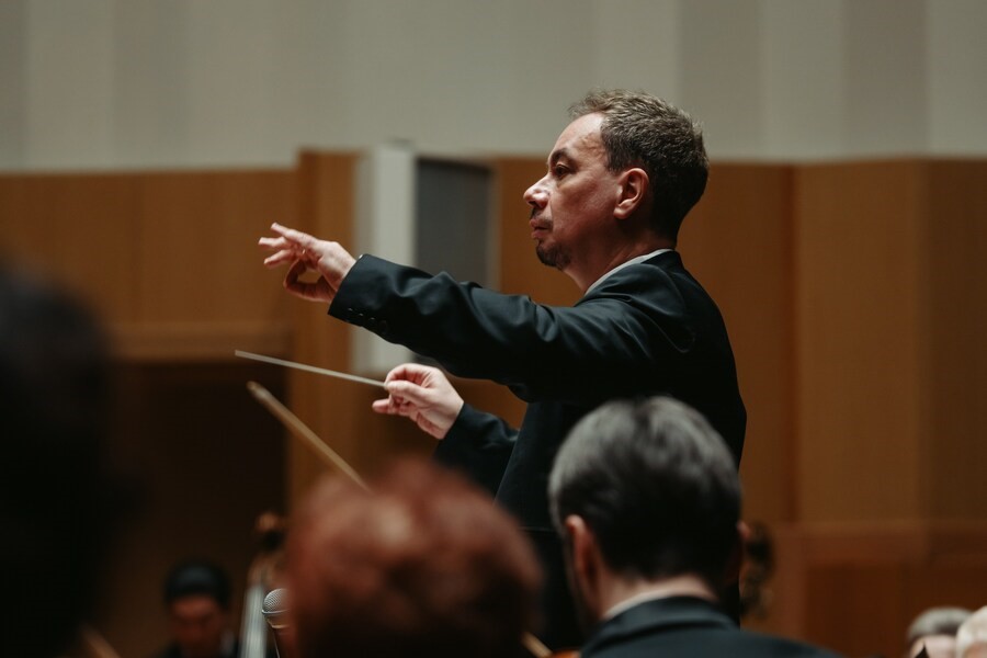 Главный день марафона начался нестандартно — с живого звучания Красноярского академического симфонического оркестра. Маэстро Владимир Ланде на практике показал зрителям, как музыка физически воздействует на живой организм.