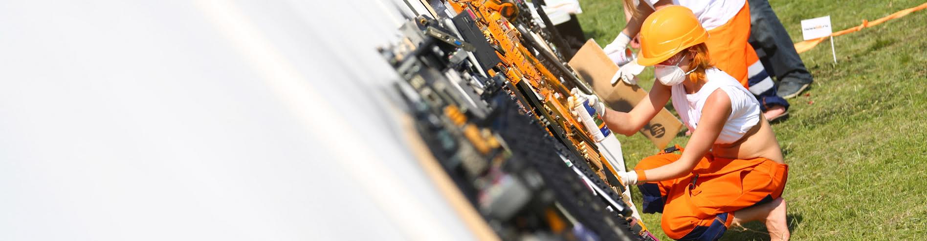 21 июня гости фестиваля «Зелёный» на красноярском острове Татышев создали арт-объект в виде логотипа Newslab.ru. Площадка, на которой можно было принять участие в экологической акции, была организована нами специально, чтобы помочь горожанам избавиться от старой техники, не нанося при этом ущерб окружающей среде.
