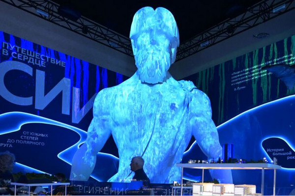 Эта пятиметровая фигура весом около тонны символизирует главную реку нашего региона — Енисей. Образ фигуры был сгенерирован искусственным интеллектом. Благодаря цифровым технологиям скульптура оживает и рассказывает посетителям выставки о самом сердце страны — Красноярском крае.