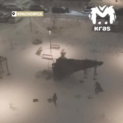 Сильный ветер повалил новогоднюю ёлку в красноярском микрорайоне Преображенский