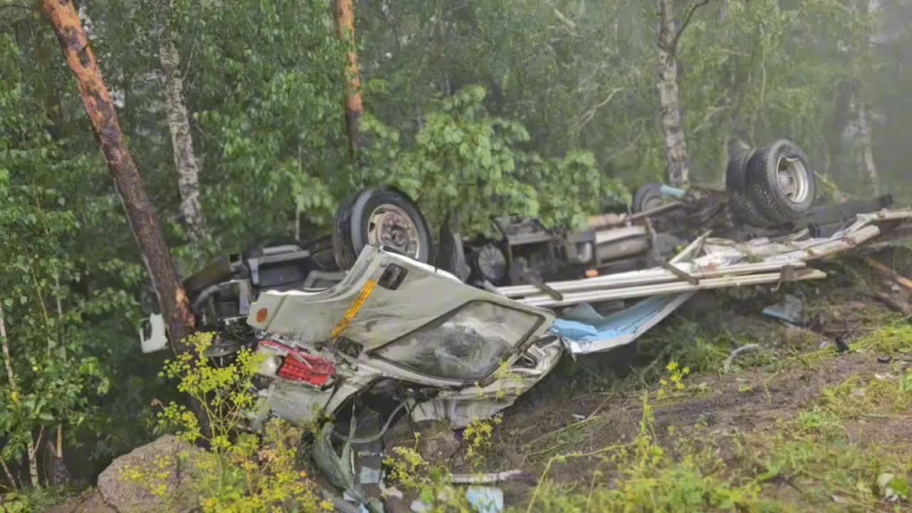 Сотрудники ГАИ работают на месте смертельного ДТП под Дивногорском