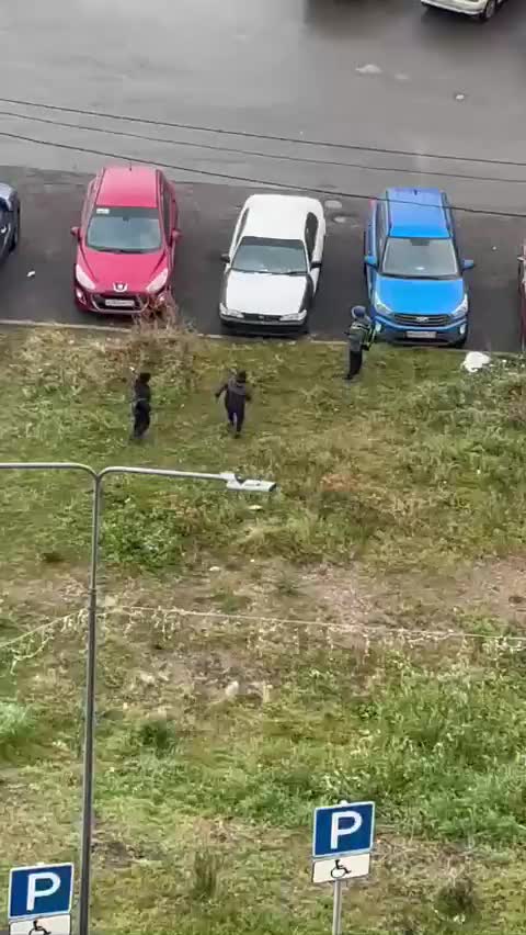 В красноярском Солнечном трое детей отпинали машину на парковке