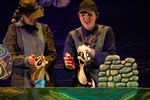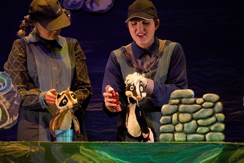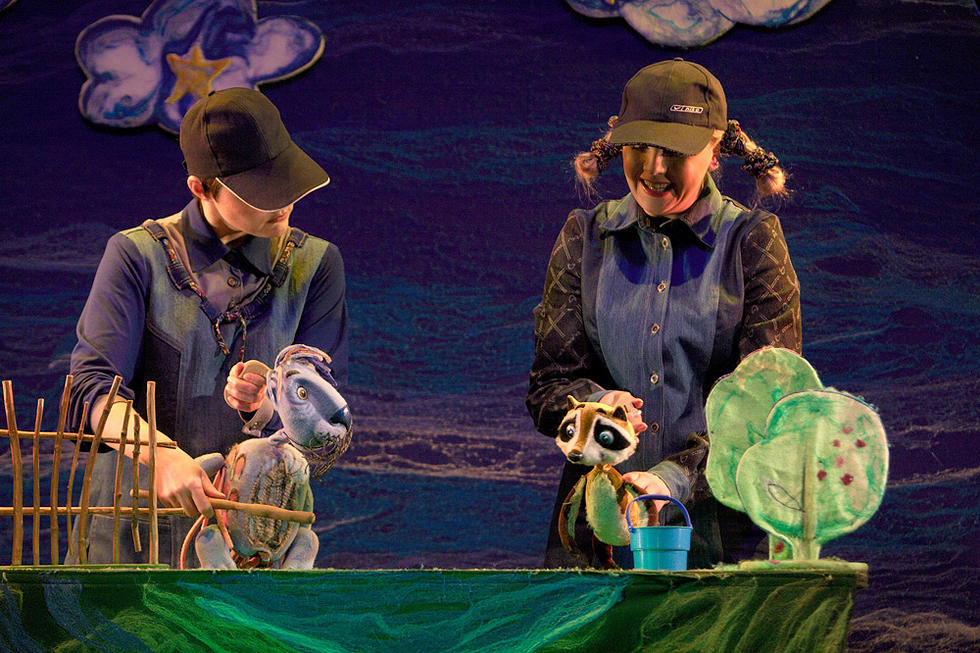 По дороге он встречает Старого Дикобраза, Большого Скунса, Обезьянку и Того, кто сидит в пруду. Благодаря маме, он подружился с Тем, кто сидит в пруду, и перестал его бояться. Если вы хотите узнать, кто сидел в пруду, приходите к нам на спектакль.