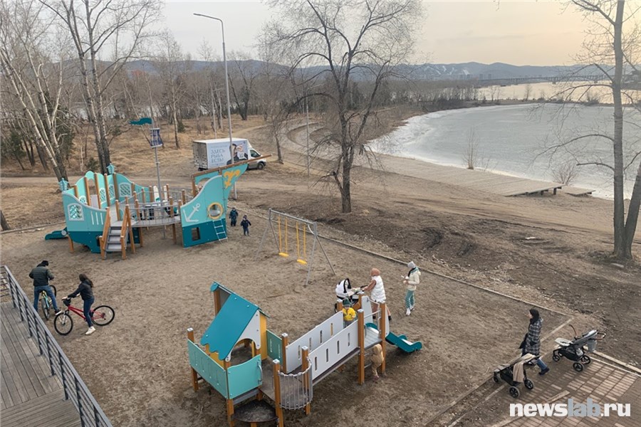 В дирекции «Татышев-парка» обещают, что детская площадка откроется в начале лета. Пока же дети могут поиграть на большом корабле, который поставили рядом с «Домом у озера» — кафе рядом с Вантовым мостом.