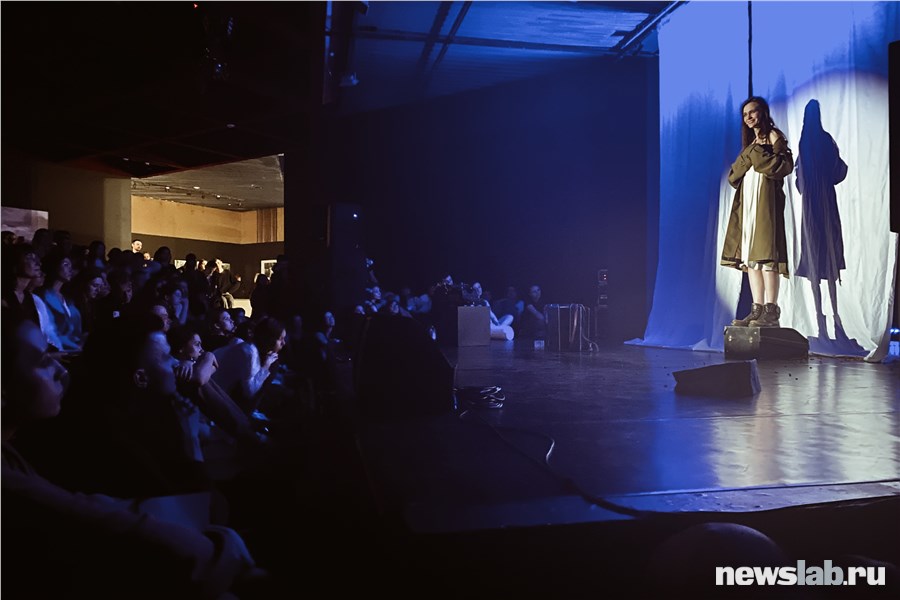 Из-за огромного количества людей, которые постоянно двигались из одной точки музея в другую, заполняя собой всё пространство, под конец вечера мне стало дурно. Искусство во всех своих проявлениях попросту «исчезло» — я перестала понимать, что происходит вокруг, хотелось только поскорее сбежать. Когда из-за духоты и лавины звуков мне физически стало тяжело находиться на «Музейке», мы спустились на первый этаж и вызвали такси, не решившись снова подниматься на выступление театра. Но позже «ухватили» несколько фотографий и отзывов красноярцев о нашумевшем моноспектакле.