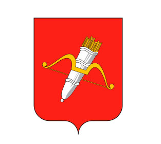 В зеленом поле поверх лазоревой оконечности два золотых соболя с червлеными глазами, обращенных друг к другу, стоящие на задних лапах на золотой тетиве опрокинутого золотого лука, держащие двумя передними лапами серебряную стрелу, острием упирающуюся в тетиву.