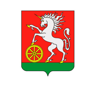 Вот что сказано в описании герба: «В червленом поле на зеленой оконечности восстающий серебряный единорог с золотыми глазами, рогом и копытами, ударяющий левым передним копытом в обод поставленного справа внизу золотого колеса». Символы связаны со становлением и развитием города.