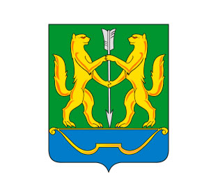 Соболя — символ пушного промысла, стрела острием вниз символизирует мир. А голубая оконечность показывает реку Енисей, на берегах которой расположен город.