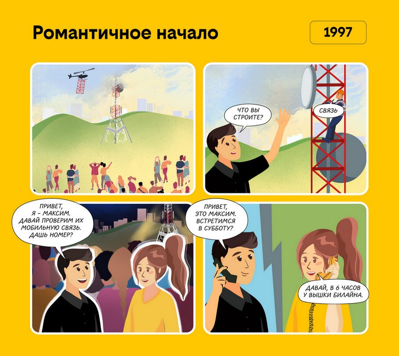Это был далекий 1997 год — тогда всё только начиналось. «Би Лайн» (тогда название писалось именно так) запустил первую в России сеть GSM 1800. Первые базовые станции становятся местными достопримечательностями, говорят, что рядом с ними даже назначают свидания.