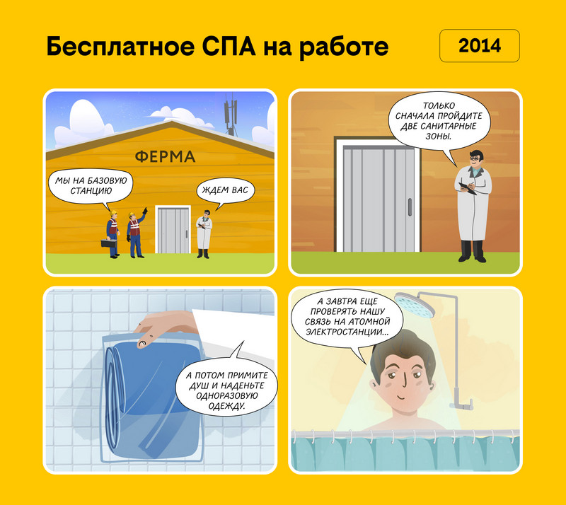 2014 год — наступило время скоростного мобильного интернета. Оператор запускает сеть 4G. Появляется все больше моделей смартфонов и выгодных мобильных тарифов. Также увеличивается интернет-покрытие. Сети строятся не только в крупных городах, но и рядом с небольшими населенными пунктами, и на территориях промышленных комплексов. Порой для обслуживания базовых станций специалистам билайна приходилось каждый день преодолевать «квесты».