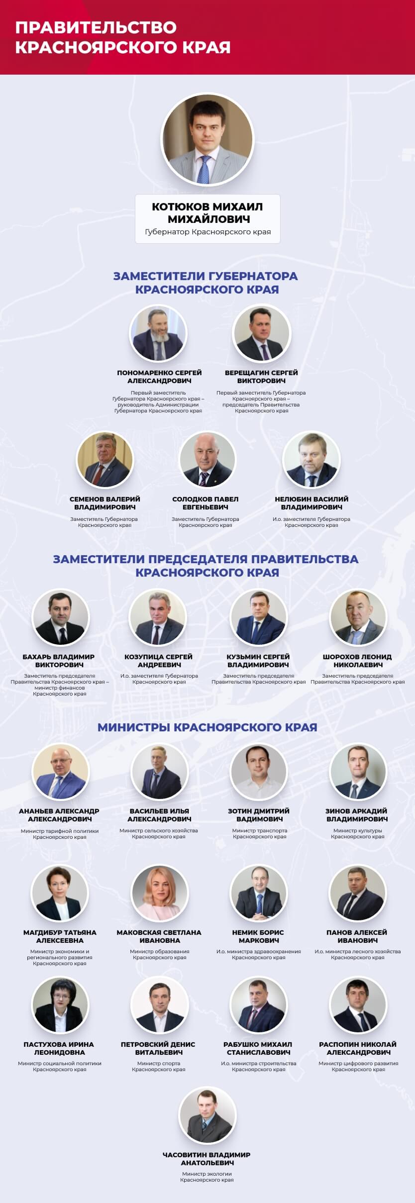 Состав правительства Красноярского края по данным на 31.10.2023 года: