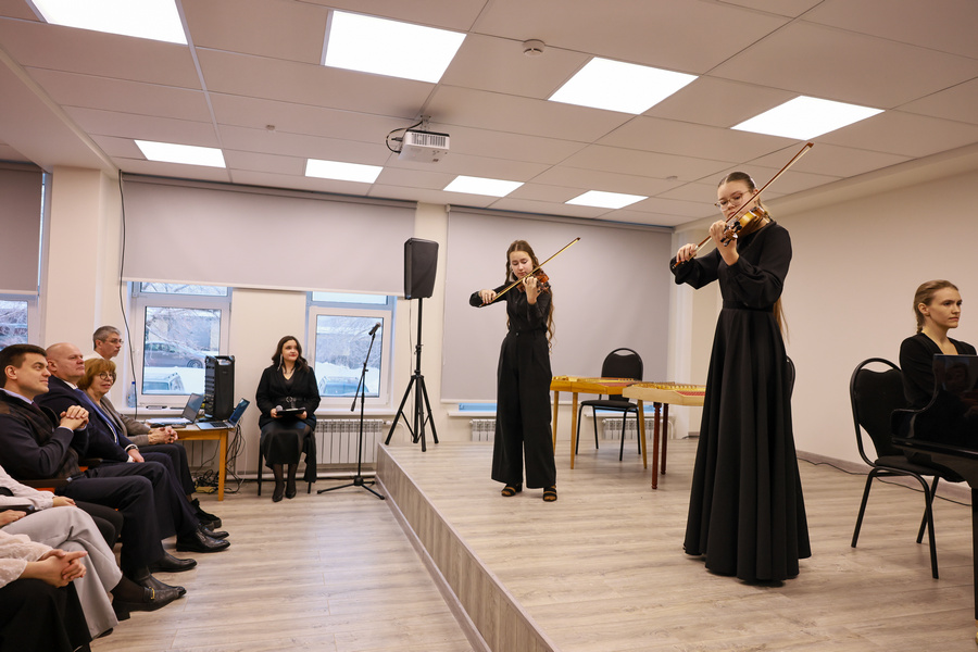 На торжественном мероприятии, посвященном открытию школы, юные музыканты продемонстрировали свои умения гостям праздника.