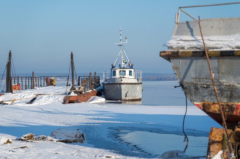 На бурную жизнь заледеневшей акватории с яра взирают статуи, явно экспроприированные из «Таёжного» — Туристка и Пилот. Если проехать чуть дальше по берегу к переправе, можно застать рандомно работающий паром и посетить деревни на правом берегу Енисея — Усть-Кан и Большой Балчуг, зимой дорога к ним вполне проезжабельна.