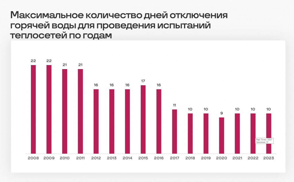 Кроме этого, город получил и другие плюсы. Сейчас уже мало кто из жителей помнит, но еще несколько лет назад отключение горячей воды для испытания трубопроводов в Красноярске составляло 20 дней: в мае после окончания отопительного сезона отключали весь город на 10 дней, а потом еще на такой же срок по районам. С началом строительства новых трубопроводов этот период сократился вдвое. К этим изменениям город быстро привык, и теперь уже энергетики часто слышат от красноярцев «да, так всегда и было». Но так, конечно, это было не всегда.