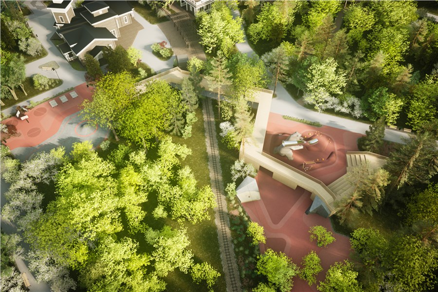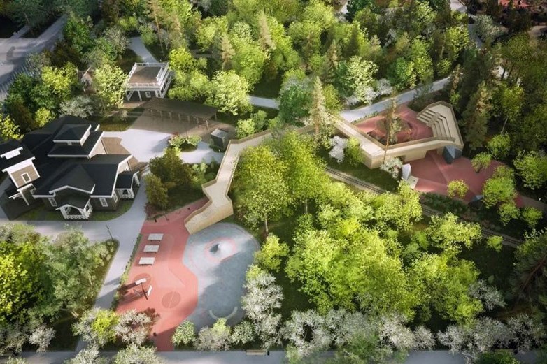 Площадка будет расположена недалеко от центрального входа. В западной части парка, по правую руку, если двигаться от центрального входа к Енисею по центральной аллее. Открыть ее планируют к концу 2024 года.