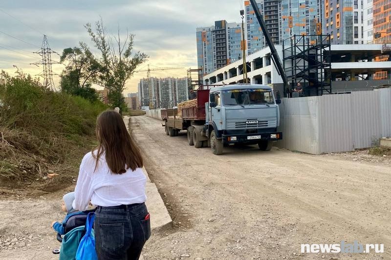 «Вроде как про пешую доступность магазинов — это правда, потому что до ближайшего нужно идти 15 минут. Но я с коляской по этой дороге, где ездит спецтехника, по пыли, просто не пройду. Вокруг закрытые дворы, которые приходится обходить. В общем, без машины здесь делать нечего», — рассказывает Юлия.