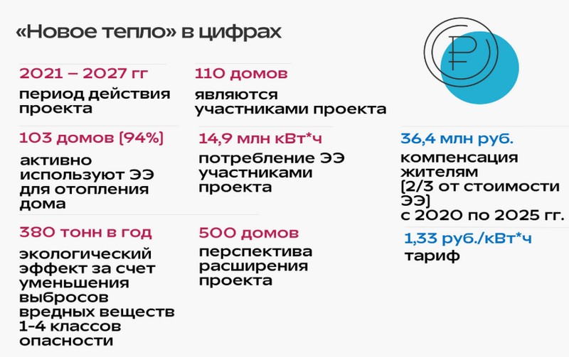 С 2021 года в Красноярске действует проект СГК «Новое тепло», цель которого заключается в снижении выбросов от печей частного сектора. Участники проекта — 110 домовладений — отказались от традиционных видов топлива и перешли на электроотопление.