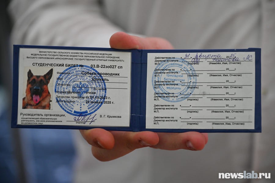 Затем мы идем на выгул, а сразу после этого — в институт. На лентах Дункель лежит рядом, отдыхает. Единственный студент, которому официально разрешено спать на парах (смеется).