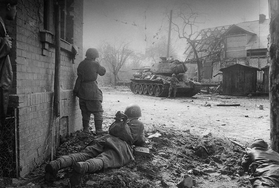 Фаустпатроны, битый кирпич, завалы железобетона, метавшиеся в панике жители, гранаты и заряды тротила, летевшие с крыш и верхних этажей — все это создавало препятствия. В ответ танкисты били из орудий, обрушивая здания и простенки. На улицах шли ожесточенные бои, советским танкам противостояли «Тигры» и «Пантеры».