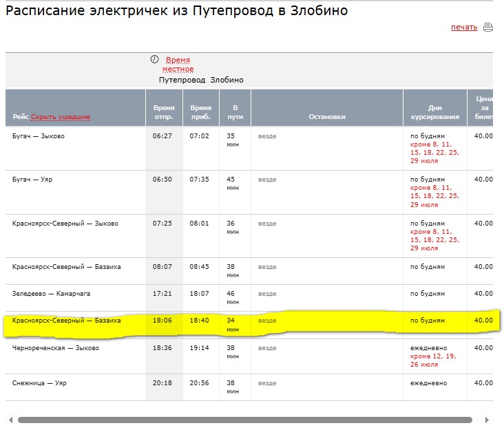 Стоит признать, что электричка — отличная возможность пересечь практически весь Красноярск в час пик и вовремя добраться до места. Единственный ее «минус» — расписание. Оно «привязано» ко времени работы крупных производств, поэтому основная масса электричек ходит утром и вечером.