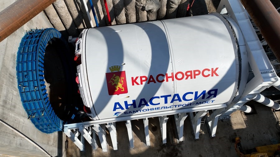 Этот гигантский щит назван в честь Анастасии Стеблевой — легендарного красноярского геолога, Героя Социалистического труда. Теперь ее тезке предстоит пройти под землей 1262 метра на глубине 10-11 метров и установить почти 900 бетонных колец, формируя готовый тоннель.