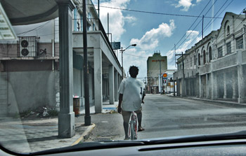 Местные начинают переговариваться между собой: «А-а-а, картинки на стенах? Да, есть такие, вон там, в подворотнях. Но вы одни туда лучше не ходите». Парень на велосипеде предложил проводить нас: «Со мной вас тут не тронут. Только в машине езжайте, ходить здесь не надо». Через пару кварталов он показал подворотню и предложил завернуть. В ней оказалось действительно много граффити. Еще там оказались местные мужики, которые увидев меня, белого человека с фотоаппаратом, обалдели так, будто перед ними сидел оживший Боб Марли.