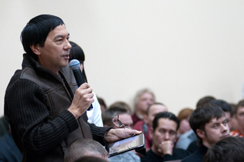 После Попова выступали ученые, экологи и общественные деятели. Потом настала очередь девушек, которыми руководил Максим Уразов, носить микрофоны – пришло время задавать вопросы. По большому счету они все были формальными. Разве что ТЭФИносный экс-телеведущий Сергей Ким упрекнул представителей «Русала» в том, что они не представили никаких документов – ни плана строительства, ничего. Есть только одни обещания и заверения на словах. Попов ответил - вся документация сейчас находится в Главгосэкспертизе.