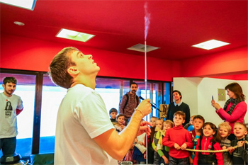 Экскурсовод: «Очень большой популярностью пользуется зеркало, на котором взлетают воздушные медузы, стенка с объемными рисунками, маятник Ньютона. Дети бегают, играют, собирают роботов из щёток. День рождения обычно длится часа два, но однажды дети остались до конца рабочего дня, что-то мастерили, собирали. Это нетрадиционный день рождения, науку можно потрогать руками, и это очень интересно».