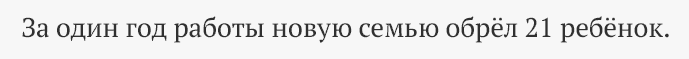 Проблема сиротства огромная, многосоставная и очень сложная. Здесь всё: и неблагополучные семьи, и специфика госучреждений для сирот, и трудности, с которыми сталкиваются выпускники детских домов и приёмные семьи. И весь этот комплекс требует поддержки и глубокого, умного подхода. Нужно работать и с неблагополучными семьями, и с детьми, которые уже оказались в домах ребенка и в детских домах: поддерживать, устраивать их в семьи, причём в хорошие, готовые принять сироту и разделить с ним все сложности его развития и реабилитации.
