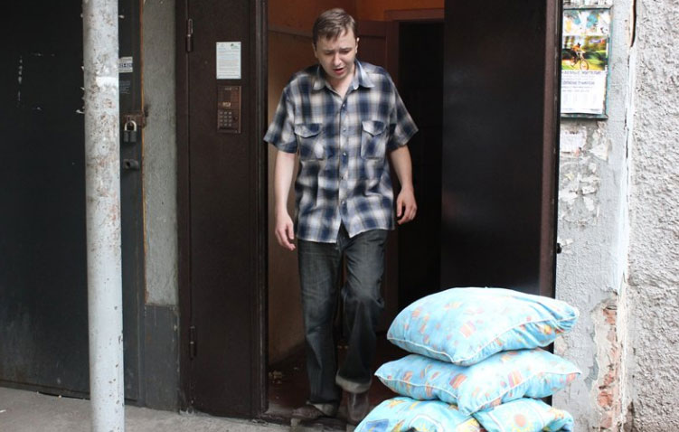 В память о недавно умершем друге — Романе Бурлаке — написал я про наш последний совместный проект — гостиницу в квартире. Вот на фото Роман перетаскивает остатки вещей.