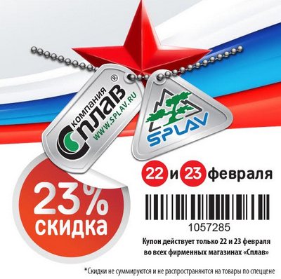 И еще одна отличная новость — к 23 февраля магазин устраивает скидки в 23%. Все подробности можно узнать на сайте «Сплава».
