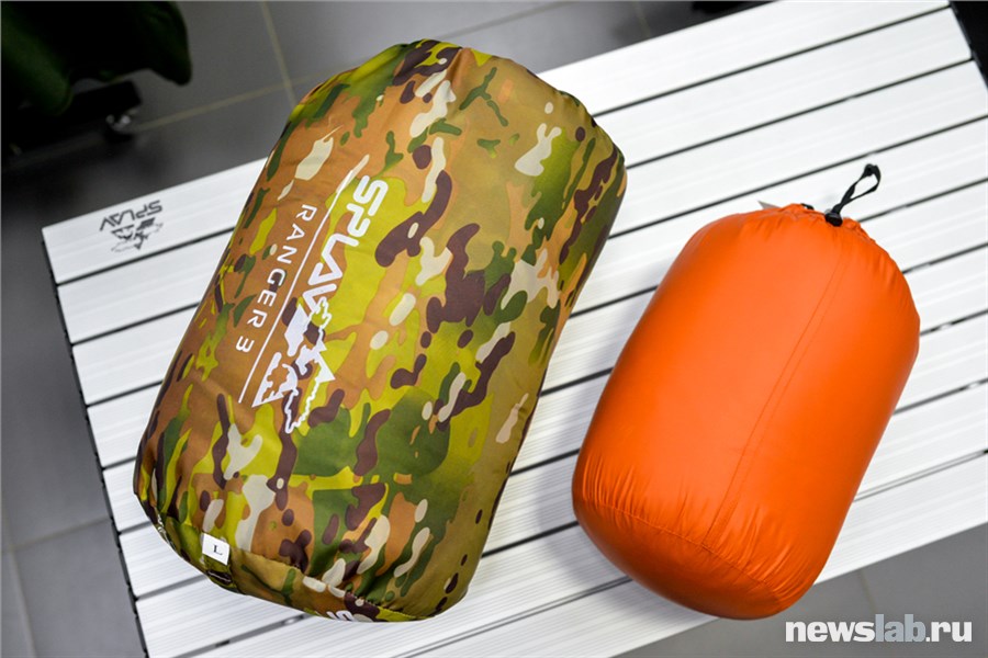 В качестве утеплителя в спальниках применяется синтетика или пух. Пух водоплавающих птиц позволяет в разы уменьшить объем и вес, при этом такой спальник будет еще и теплее синтепонового. А если спальник упаковать при помощи компрессионного мешка, то это не только позволит еще сильнее уменьшить объем, но и дополнительно защитит вашу «постель» от намокания во время перехода.