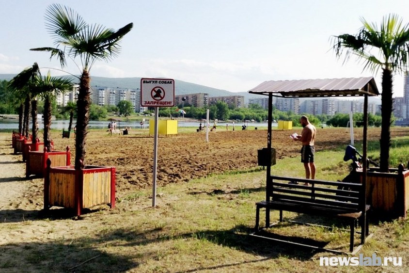 Пальмами в деревянных кадках на пляже обозначили главную тропу — они стоят по обе стороны на пути от ворот до воды и еще несколько — вдоль берега. Тридцать здоровенных деревьев посреди привычных одуванчиков так обрадовали горожан, что некоторые даже залазят на них, чтобы сделать фото поэкстравагантней. А вдруг за Турцию сойдет и друзья в соцсеточках обзавидуются? Главное, чтобы Коммунальный мост в кадр не попал.