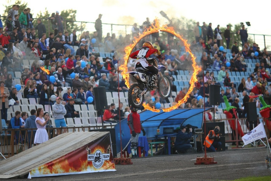 С 21:00 до 22:30 на западной стороне Татышева состоится мотофристайл «FMX 13» с элементами файершоу. Но главным зрелищем дня в 20:00 станет «Прогулка над Енисеем». Российский канатоходец Максим Кагин пройдёт по натянутому между опорами подсвеченного разноцветными огнями вантового моста канату.
