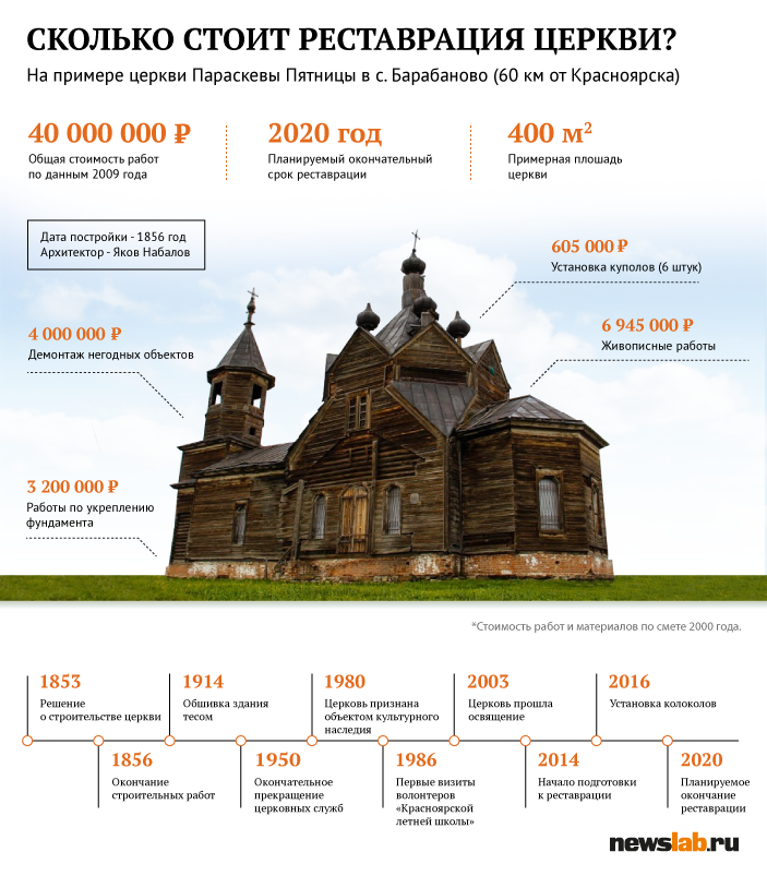 Для церкви уже готов проект, имеется и так называемая локальная смета. Многие цифры в ней просчитаны по нормативам, принятым много лет назад, таков регламент составления подобных документов. В общей сложности, на сегодняшний день на полную реставрацию храма потребуется сумма в районе 40 миллионов рублей. Но более точные данные удастся привести только после согласования документов и соблюдения всех процедур, торгов и конкурсов.