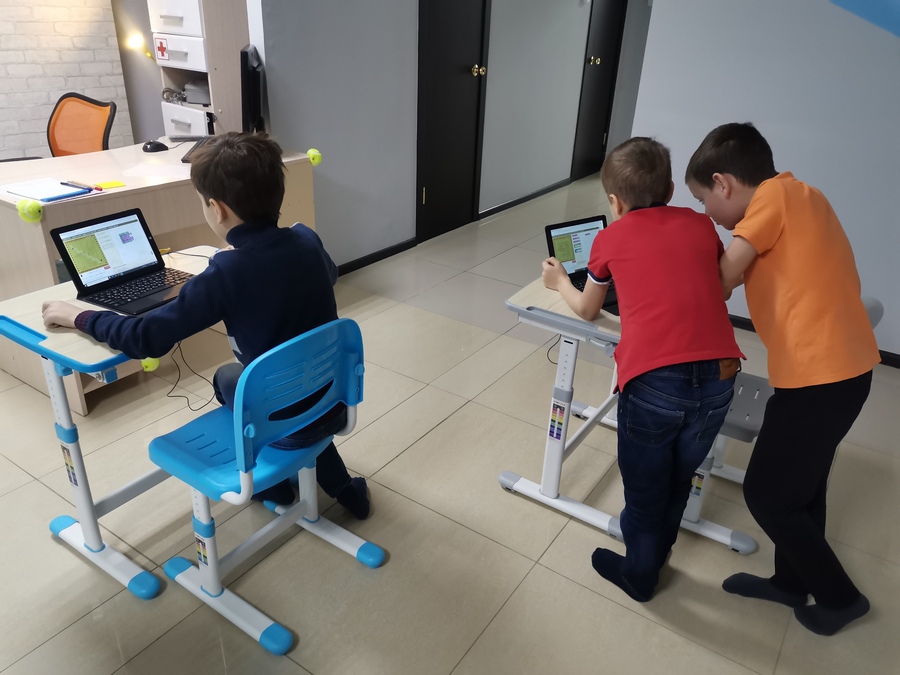 Занятия проходят в группах до 10 человек максимум, чтобы it-адвайзер мог успевать работать с каждым ребенком. У нас именно it-консультант, а не преподаватель.