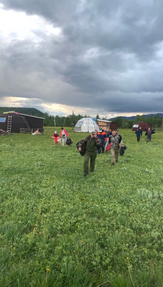 «Они стояли на возвышенности, все дороги вокруг них были затоплены, вода уже подбиралась к палаткам. Пилоты посадили вертолёт на небольшой сухой „пятачок“», — сообщила пресс-служба краевых спасателей.