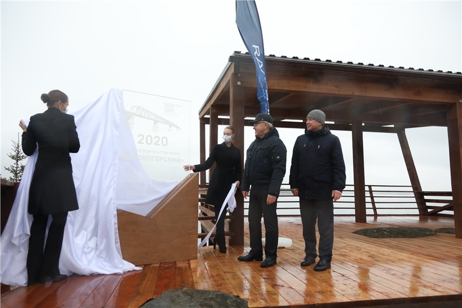 Во время торжественной церемонии Александр Усс и глава Енисейского района Александр Кулешов оставили свои подписи на стеклянной стеле, установленной на месте начала строительства моста.