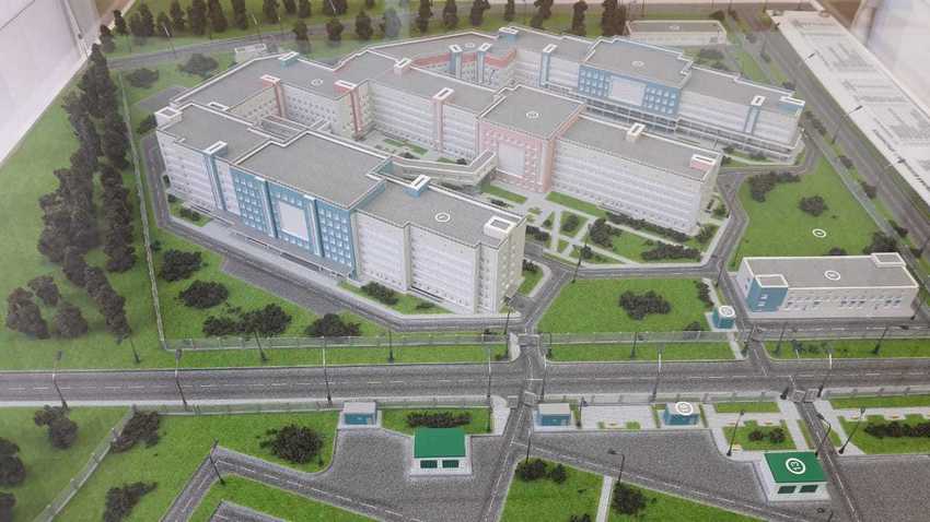 Построить учреждение планируется неподалеку от кардиоцентра, в районе улицы Караульной. В новой больнице будет 640 коек: 230 хирургических, 250 соматических, 160 инфекционных и 60 реанимационных. Она будет состоять из пяти корпусов (хирургический, соматический, административно-диагностический, лабораторный, инфекционный) и отдельно стоящих пищеблока, газовой станции и гаража.