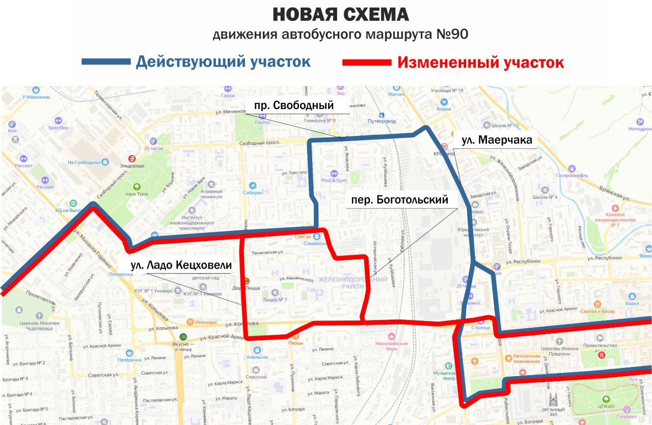Также с 11 февраля автобусный маршрут № 90 вернется к прежней схеме движения — по улице Копылова и через переулок Боготольский.
